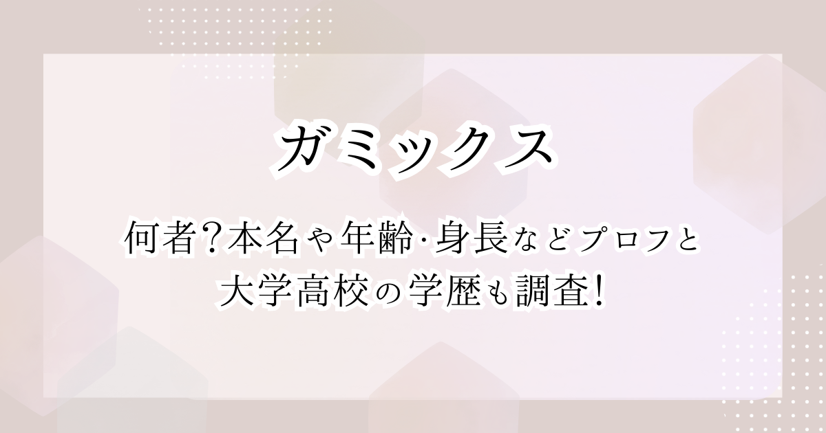 そんなガミックスさんについて、何者なのか、本名・年齢・身長といったプロフィールや、大学や高校などの学歴が気になっている方もいるのではないでしょうか。