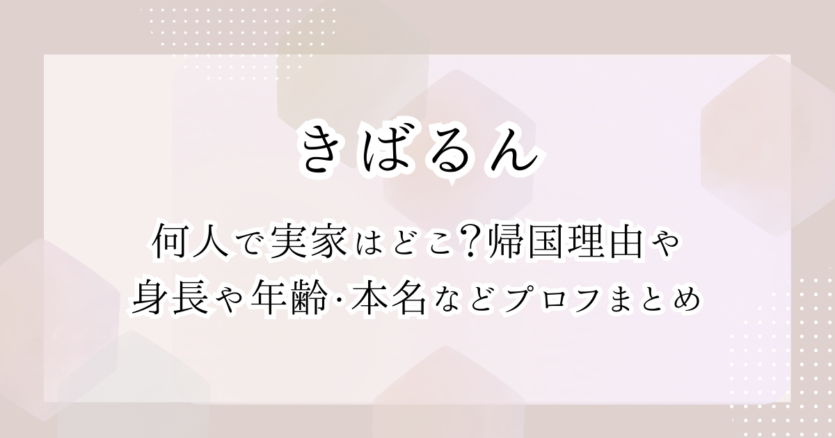 そんなきばるんさんについて、何人で実家はどこか帰国理由身長や年齢・本名などのプロフィールが気になっている方もいるのではないでしょうか。