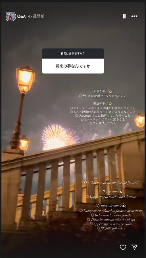 他の投稿では#被写体モデル #俳優 #インフルエンサー #女子大生などのハッシュタグがついていることが多く、マルチに活動している様子が伺えました。