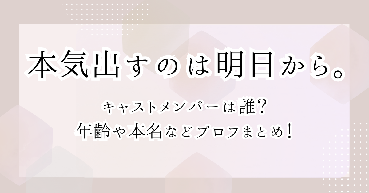 今回は、本気出すのは明日から。のキャストメンバーは誰?年齢や本名などプロフまとめ!と題して、各キャストのプロフィールについて詳しくまとめていきました。