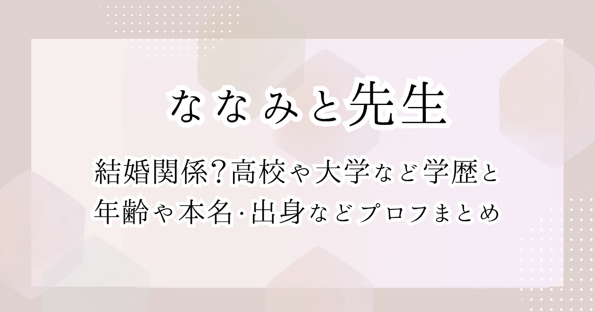 そんな中でななみと先生は結婚関係なのか、高校や大学などの学歴、年齢や本名・出身などのプロフィールも気になっている方もいるのではないでしょうか。