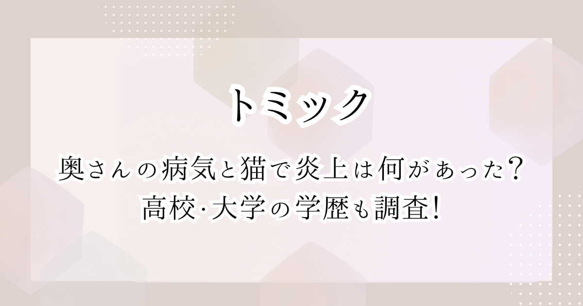 今回はトミックの奥さんの病気と猫で炎上は何があった?高校・大学の学歴も調査!と題して詳しくまとめました。